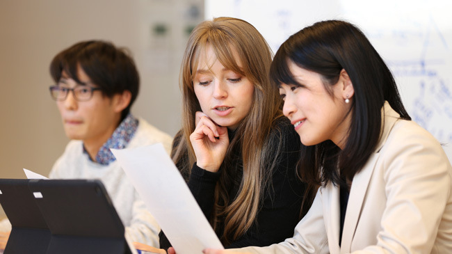日本の大学院では、修士課程・博士後期課程の学生は、全員研究室に所属します。一日の大半を過ごす研究室では、指導教員との距離がとても近く、「師匠」ともいうべき強いつながりを築くことが可能です。また、切磋琢磨しあえる仲間との出会いや、専用デスクなどの研究に集中できる環境は、多くの留学生から高い評価を得ています。