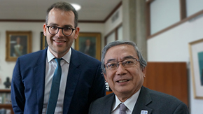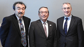 Dr. Sebastian Buckup and Ms. Mihoko Kashiwakura from the World Economic Forum met with President Yoshinao Mishima and Executive Vice President for Research Makoto Ando on April 5. The two also visited labs at Ookayama and Suzukakedai and met with Tokyo Tech researchers.