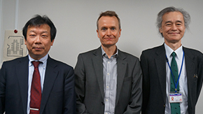 Professor Martin Cockett of the Department of Chemistry, University of York, a Tokyo Tech partner university in the U.K., met with Vice President for Institute Strategy Isao Satoh and Vice President for International Affairs Hidetoshi Sekiguchi on April 11.