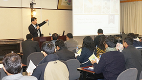 A delegation of 30 representatives of Indian academic and government institutions visited Tokyo Tech on January 21. After a brief introduction of Tokyo Tech, made by Vice President for International Affairs Hidetoshi Sekiguchi, the delegation visited two laboratories of the School of Engineering.