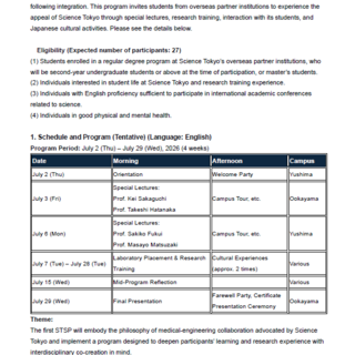 Back after two years! Science Tokyo Summer Program 2026 is open for applicants — nomination deadline: January 16, 2026