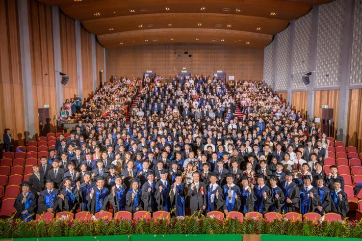 Joining the students at the ceremony were roughly 600 family members and friends, President Kazuya Masu, members of the Board, and special guests.