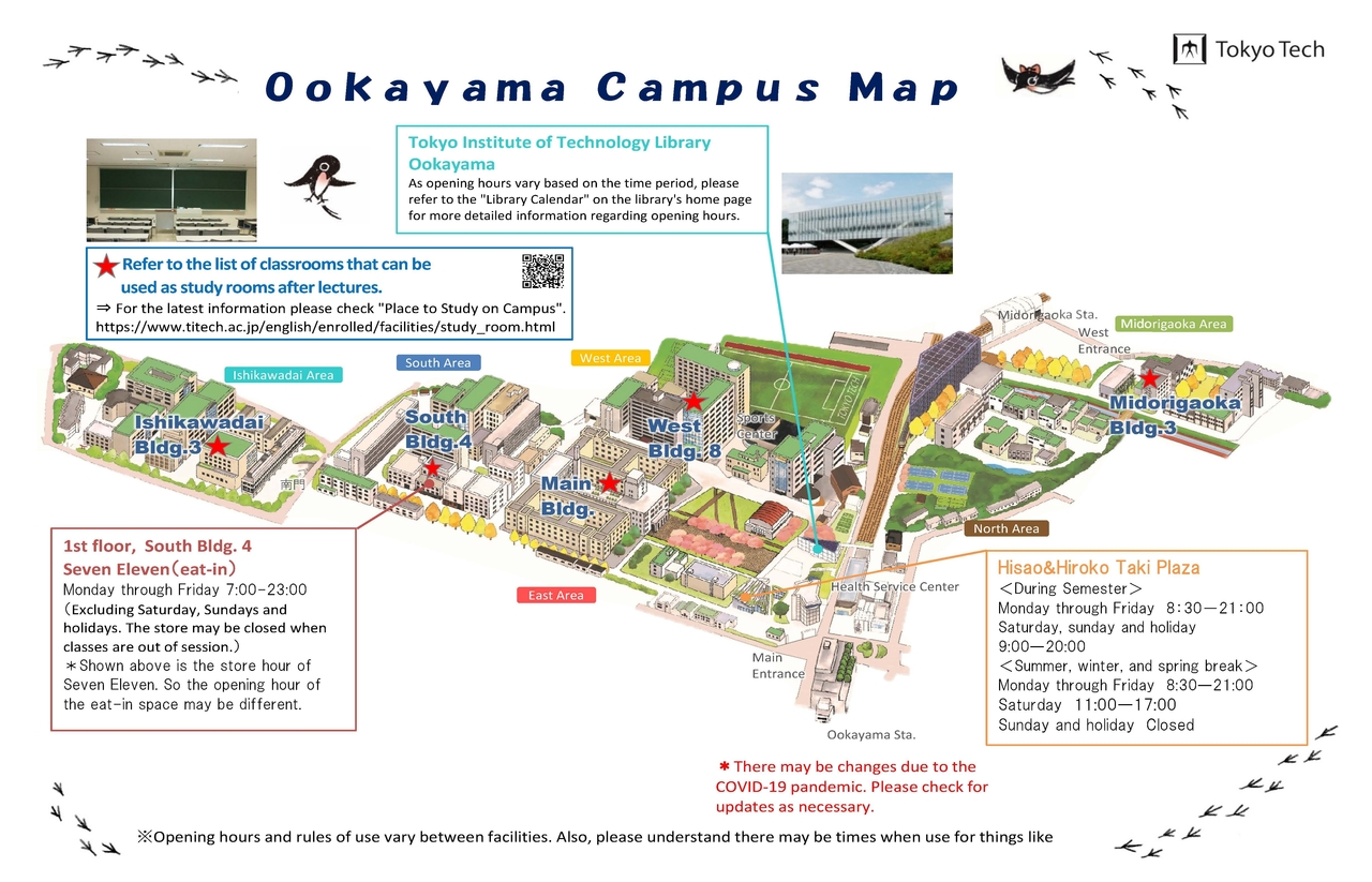 Tokyo Tech offers classrooms that students can use as free study spaces after lectures.
