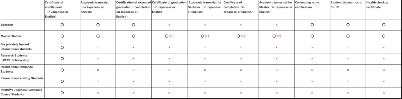 - The automated certificate issuance machines cannot issue certificates of graduation (completion) or final transcripts for students who are graduating in the year in question. ※PDF