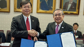 3月7日、国立台湾科技大学のリャオ・チンジョン学長ほか9名が東工大訪問し、本学との学術交流協定(全学協定)締結の調印式に出席しました。調印式には、本学からは三島良直学長、丸山俊夫理事・副学長(教育・国際担当)、芝田政之 理事・副学長(財務・施設担当)・事務局長ほか、4名の教員が出席し、台北駐日経済文化代表処から2名が臨席しました。