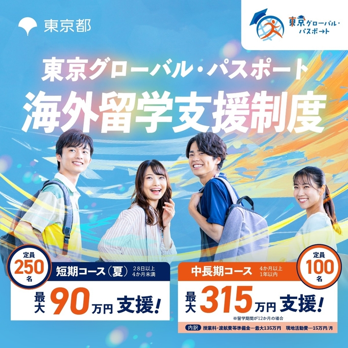 東京都が実施する新設の海外留学支援制度「東京グローバル・パスポート」が2026年度から始まります。