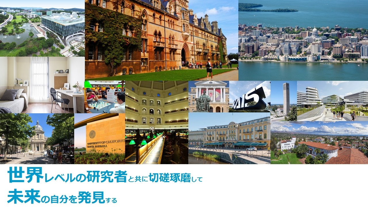 海外の研究室に滞在して、グローバルな環境で研究を行いたい、ダイバーシティを深く理解し研究の視野を広げたい、将来役立つグローバルなネットワークを構築したい、将来は海外で活躍したいと考えている修士・博士の方は、ぜひご応募ください!