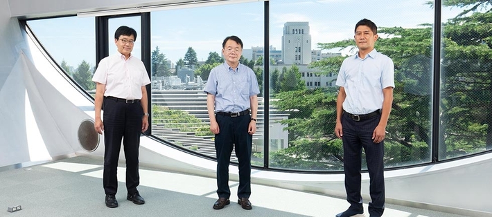 上田紀行 リベラルアーツ研究教育院長、細野秀雄 元素戦略研究センター長、阪口啓 超スマート社会卓越教育院長による鼎談