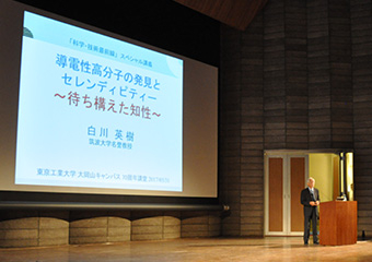 白川英樹博士による特別講演の様子(70周年記念講堂で開催)