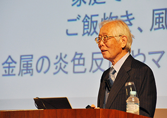授業が始まった2016年と翌年の2017年の最終回の授業では、2000年ノーベル化学賞を受賞した白川英樹博士による特別講演が行われました。「導電性高分子の発見とセレンディピティ」というタイトルの講演では、ノーベル賞の受賞理由となった導電性高分子の研究に関する講話や、これから大学生活・研究活動を行う上での心構えを伝え、新入生を激励しました。