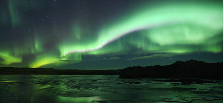 アイスランドは漢字で「氷国」と表記します。いかにも寒そうですが、実はメキシコ暖流のおかげで冬の最低気温の平均気温が−5℃と、日本の北海道くらいの気温で、北欧の中でいちばん冬の暖かな国です。また国土全体がオーロラ帯の下にあり、街中でも美しいオーロラを観測することができます。