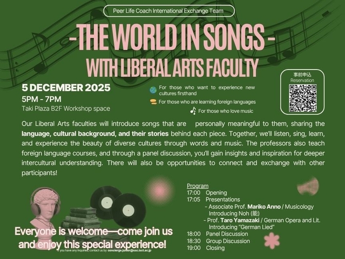 【2025.12.5 開催】外国語ワークショップ第二弾「リベラルアーツの先生と味わう『歌と言語の世界』」